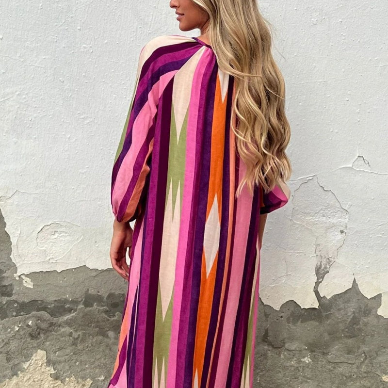 TIMELESS STRIPED PATTERN – The vertical stripes create a streamlined look that naturally elongates the silhouette. Bold yet versatile, the stripe design adds a touch of modern sophistication to your wardrobe.