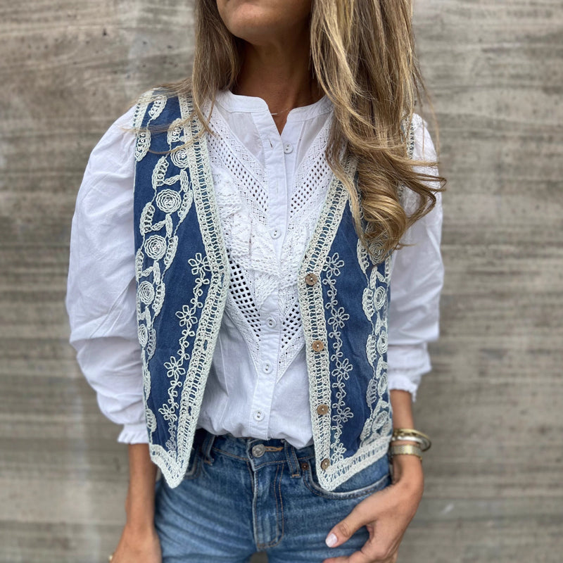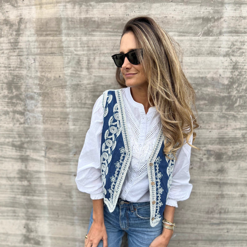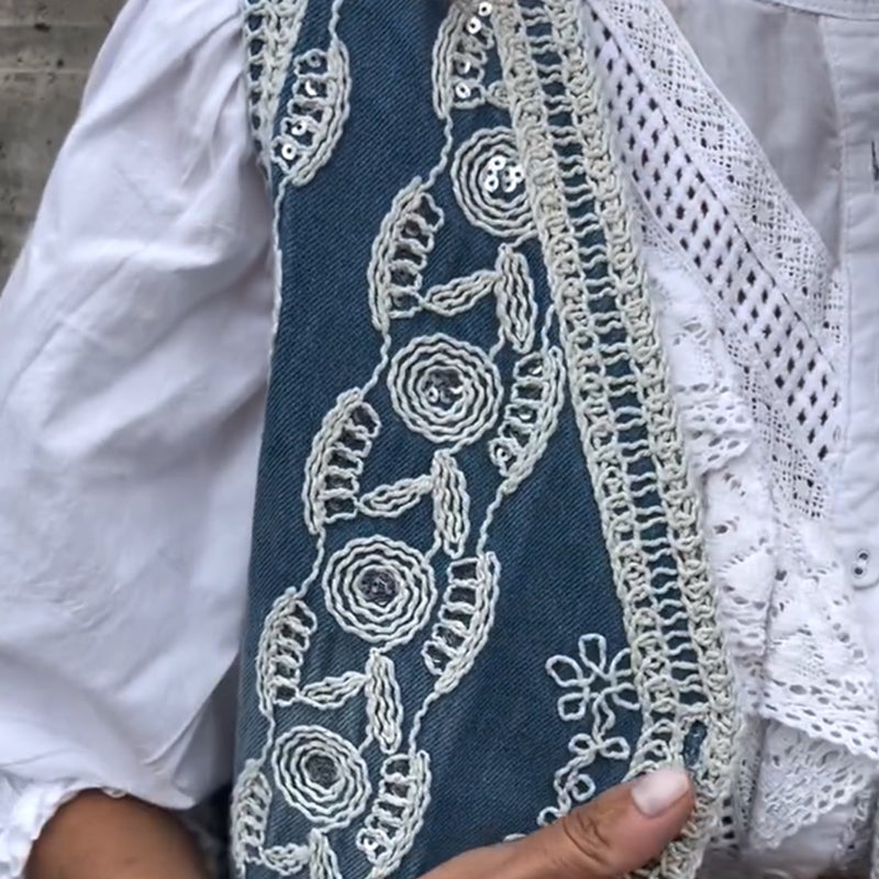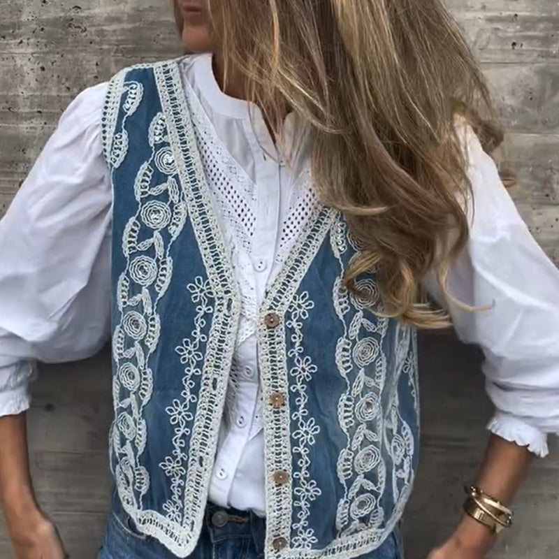 Women's Vintage Button-Front Embroidered Vest